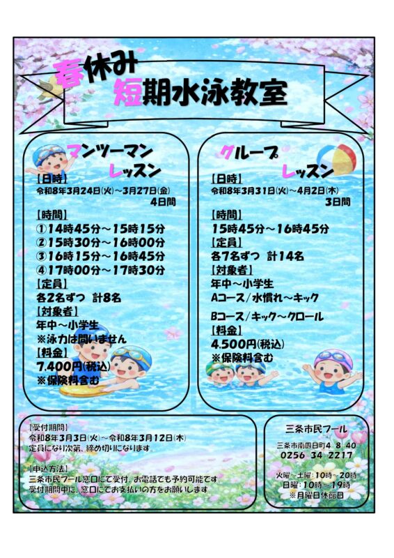 令和8年度 春季水泳教室 3月3日よりお申し込み開始!