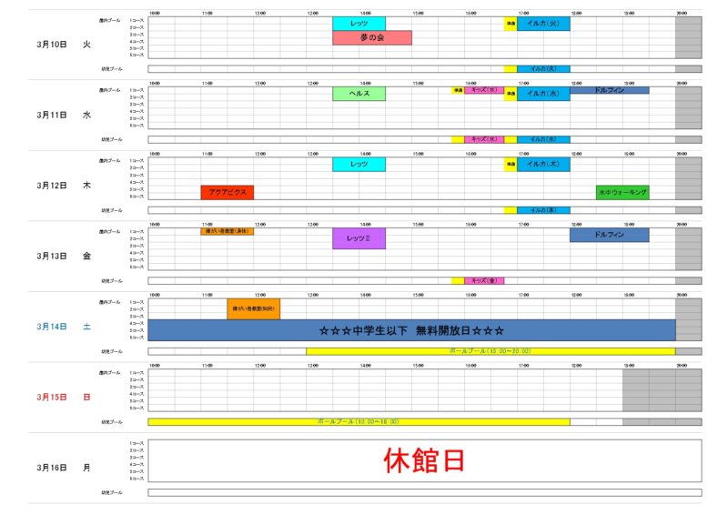 【3月10日~3月16日】予定表