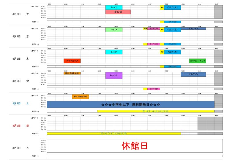 【3月3日~3月9日】予定表